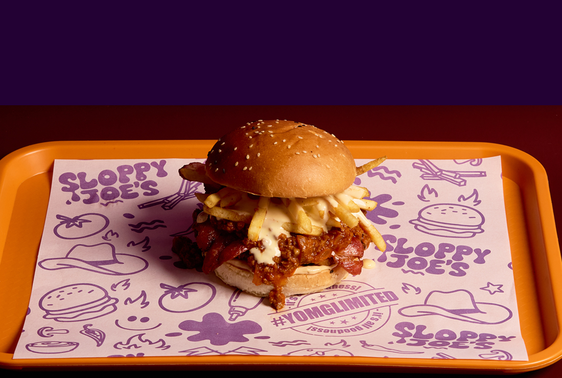 beef, cheese, YOMG house-made chilli sloppy joe sauce, jalapenos, onion fries, spicy onion jam, jalapeno mayo #yomgitsHOT